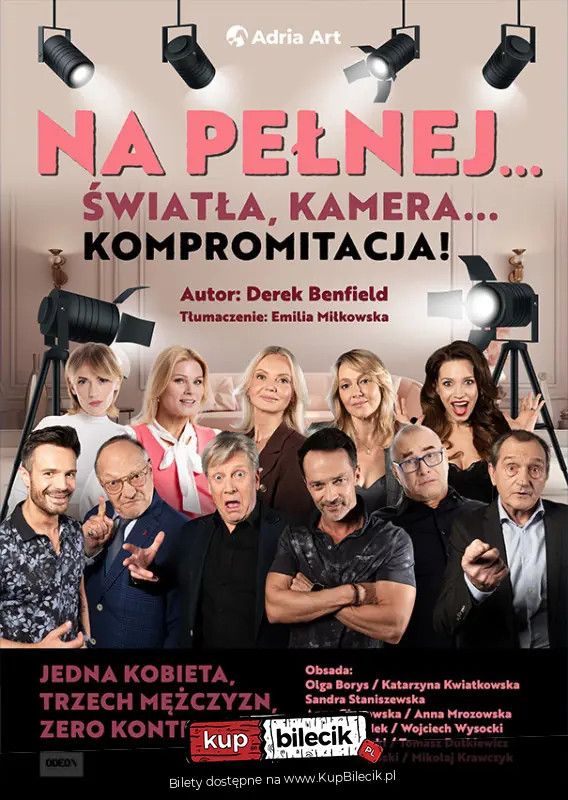 bilety: Gorący piątkowy wieczór, jedno ważne spotkanie i plan, który miał wszystko uporządkować - a zamienia się w komediową karuzelę. "Na pełnej..." to zaproszenie na farsę o wysokich obrotach i jeszcze wyższej stawce: posadzie w popularnym talk-show, reputacji i... kruchym spokoju domowym. Jeśli lubisz salwy śmiechu wywołane idealnie podkręconym chaosem, ten spektakl jest dla Ciebie. Obsada: Na pełnej... światła, kamera, kompromitacja! artyści: Olga Borys/Katarzyna Kwiatkowska Sandra Staniszewska Anna Głogowska/ Anna Mrozowska i inni"Na pełnej” to farsa Dereka Benfielda w najlepszym wydaniu: błyskawiczne wejścia i zejścia, lawina tłumaczeń i półprawd, które rodzą kolejne kłamstwa oraz tempo, które nie pozwala złapać tchu. Każdy zwrot akcji jest puentą, a każda puenta - startem nowej katastrofy. "Na pełnej…” trzyma widza na krawędzi fotela od pierwszej minuty do finałowego ukłonu. Przyjdź, by sprawdzić, jak łatwo wypaść z roli - nawet jeśli grasz ją na co dzień w telewizji. Gwarantujemy wieczór śmiechu, zaskoczeń i komediowej precyzji "na pełnej”. Bilety do nabycia na: KupBilecik.pl |